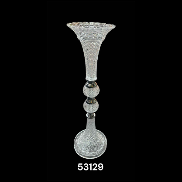 Enhance the beauty of your space with our Elegant Crystal Glass Vase (Model: 53129). Crafted with precision, this vase features a stunning transparent glass design with intricate detailing, making it an ideal decorative piece for any home, event, or wedding setting.